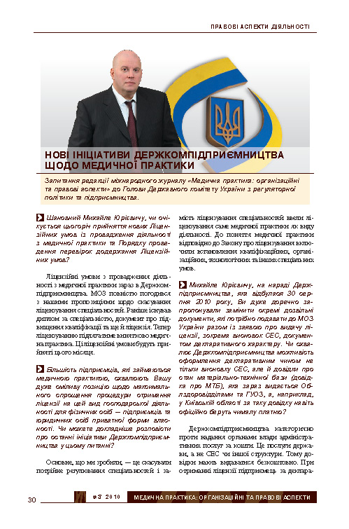 Нові ініціативи Держкомпідприємницьтва щодо медичної практики