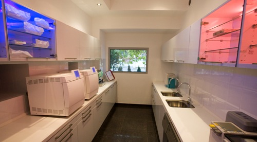 Кроме того, интимность лечебного процесса во время приема пациентов обеспечивают жалюзи. Стоматологические «витрины» радуют глаз только ночью. Благодаря продуманности планировки создается впечатление, что площадь центра более 500 кв. м (в действительности же чуть более 300 кв. м). Именно эргономика и логистика легли в основу проекта киевского центра.