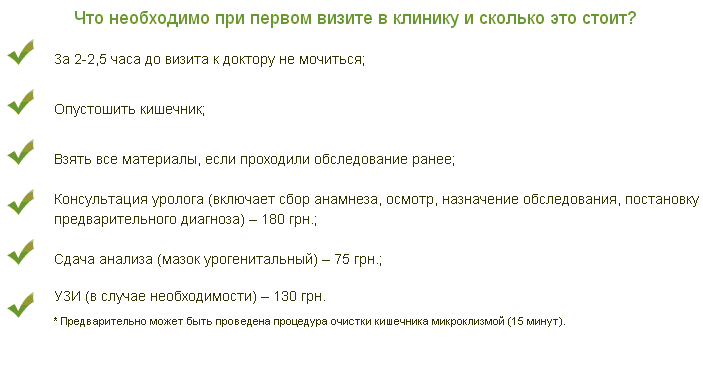 11. Если перед визитом к врачу необходима специальная подготовка, укажите порядок действия для пациента на странице сайта.