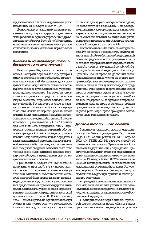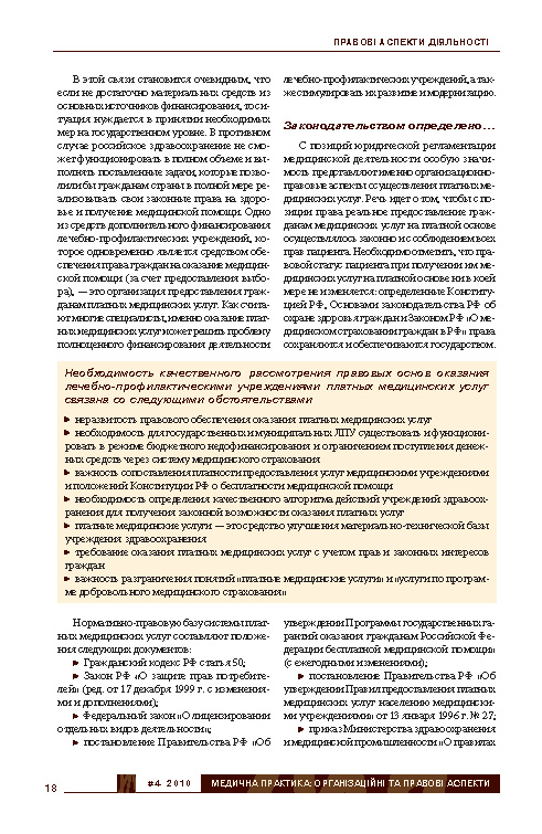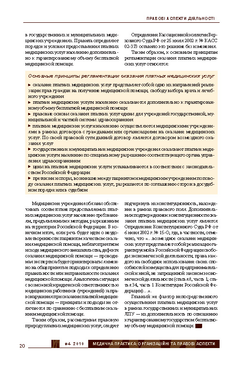 Правовые основы оказания платных медицинских услуг населению РФ