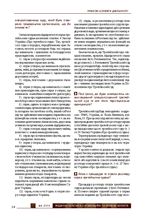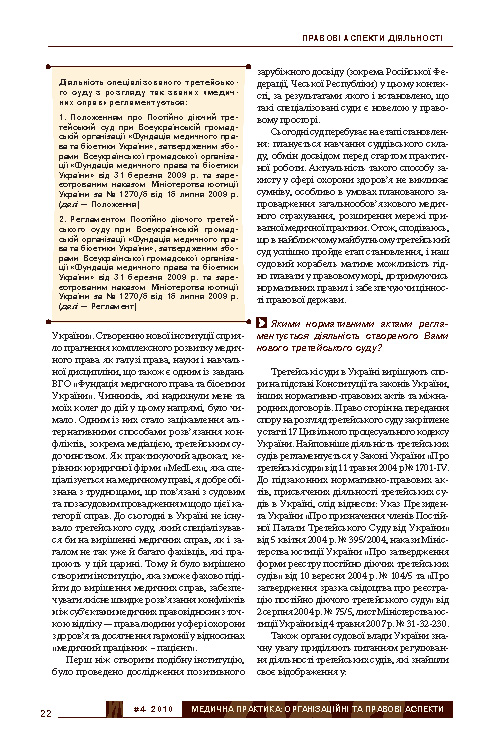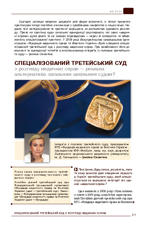 Спеціалізований третейський суд з розгляду медичних справ — реальна альтернатива загальним цивільним судам?