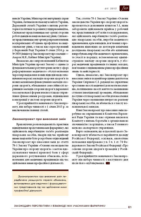 Законодавчі перспективи у взаємодії між учасниками фармринку та закладами охорони здоров’я