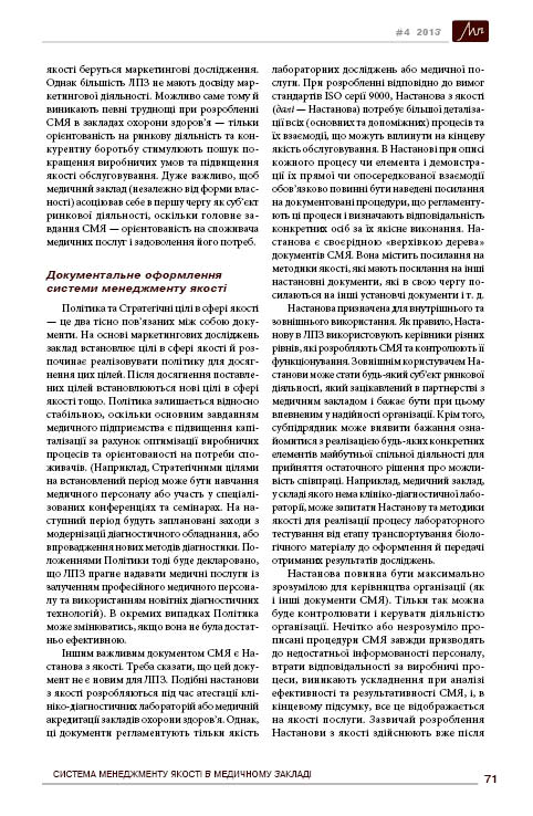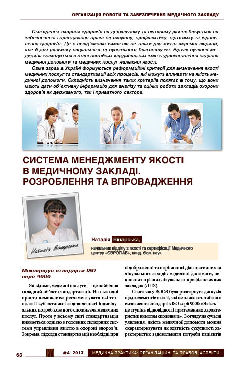 Система менеджменту якості в медичному закладі. Розроблення та впровадження