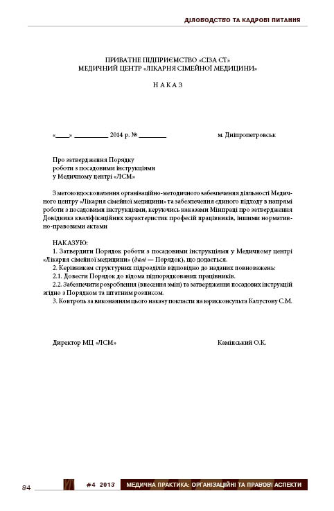 Робота із посадовими інструкціями в закладі охорони здоров’я: від А до Я