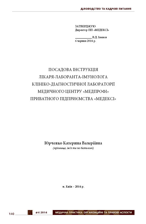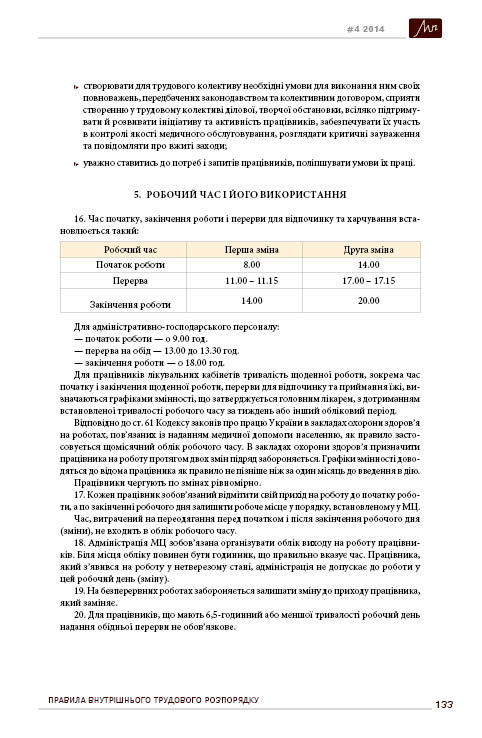«Правила внутрішньго трудового розпорядку для працівників медичного центру»